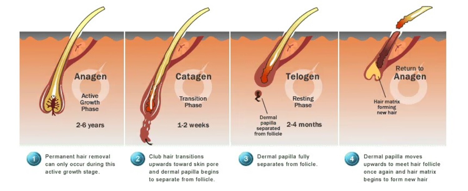 Πολλοί πιθανό να έχετε ακούσει για τρία στάδια ανάπτυξης των μαλλιών: Αναγενές, Καταγενές και Τελογενές. Αλλά στην πραγματικότητα υπάρχουν τέσσερα στάδια και το τέταρτο στάδιο είναι το εξωγενές. Αυτά τα στάδια αποτελούν έναν κύκλο. Η τρίχα αρχίζει να αναπτύσσεται, ξεκουράζεται, υφίσταται κάποιες αλλαγές στο θύλακα για να προετοιμαστεί για την τριχόπτωση και στη συνέχεια πέφτει, και στη συνέχεια ο θύλακας ξεκινά τον κύκλο από την αρχή.